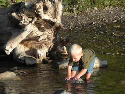 For FHE the other night we went up to Bridal Veil Falls to play in the water and have peanut butter pie that Shae made. We went up with our friends Gen and Ashton and their new baby Lucy. It was fun, but the water was pretty cold. That didn't stop Elizabeth and Ali from playing in the water. It did however keep Aiden out of the water most of the time. I have to say Ali was the most adventurous. She tried to climb up the mountain and on a big rock.